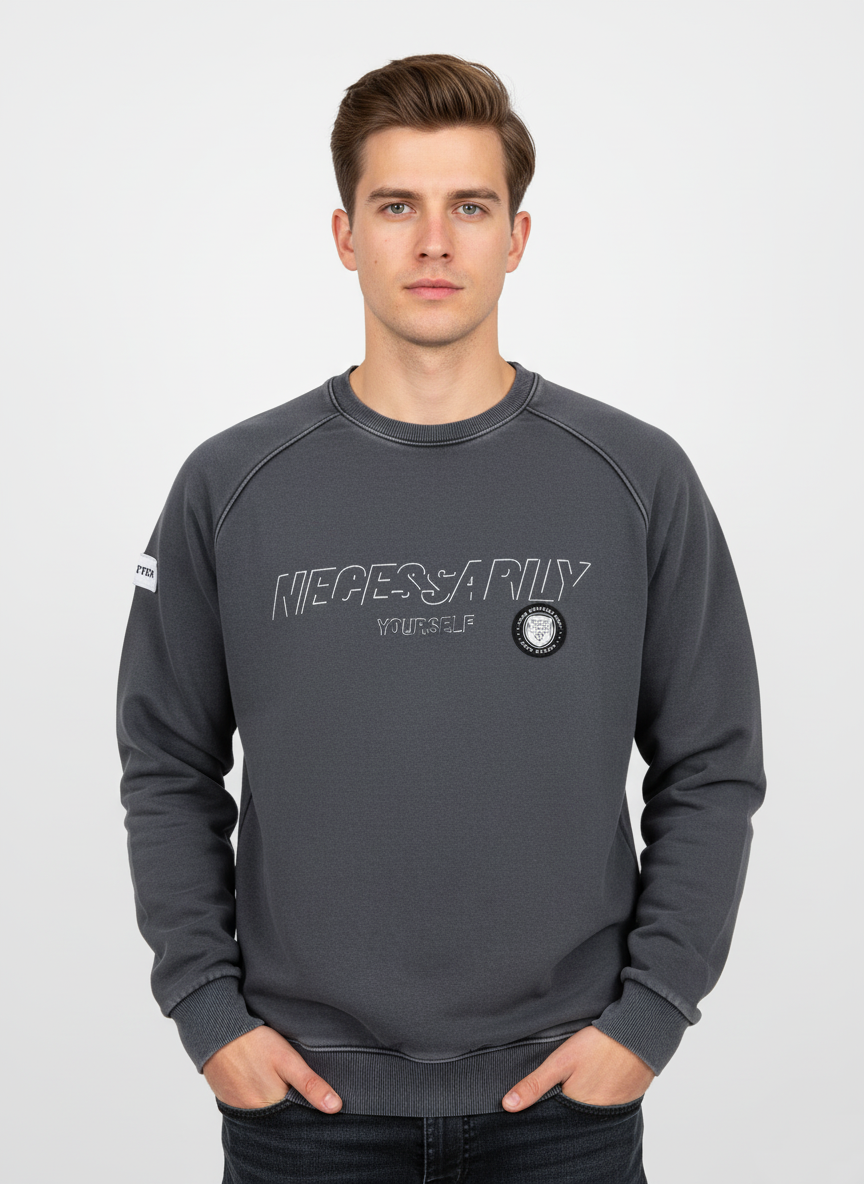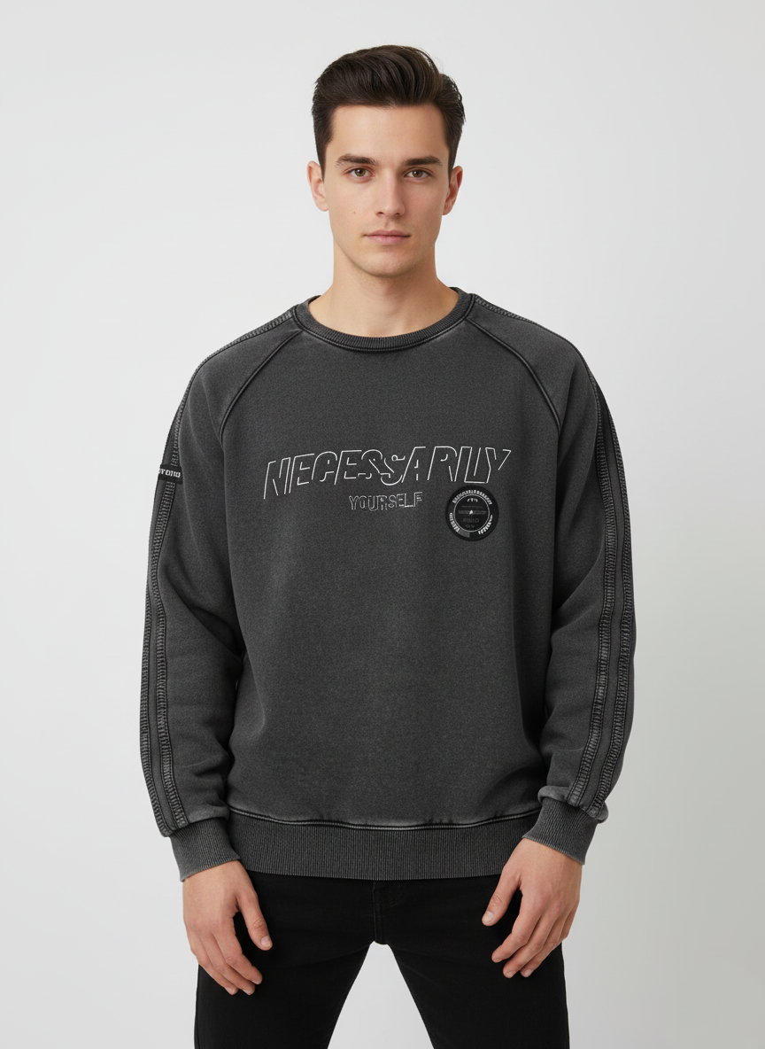 Elevate your casual game with the Acid Wash Sweatshirt — soft, stylish, and available in Charcoal, Olive, and Bluish Grey.