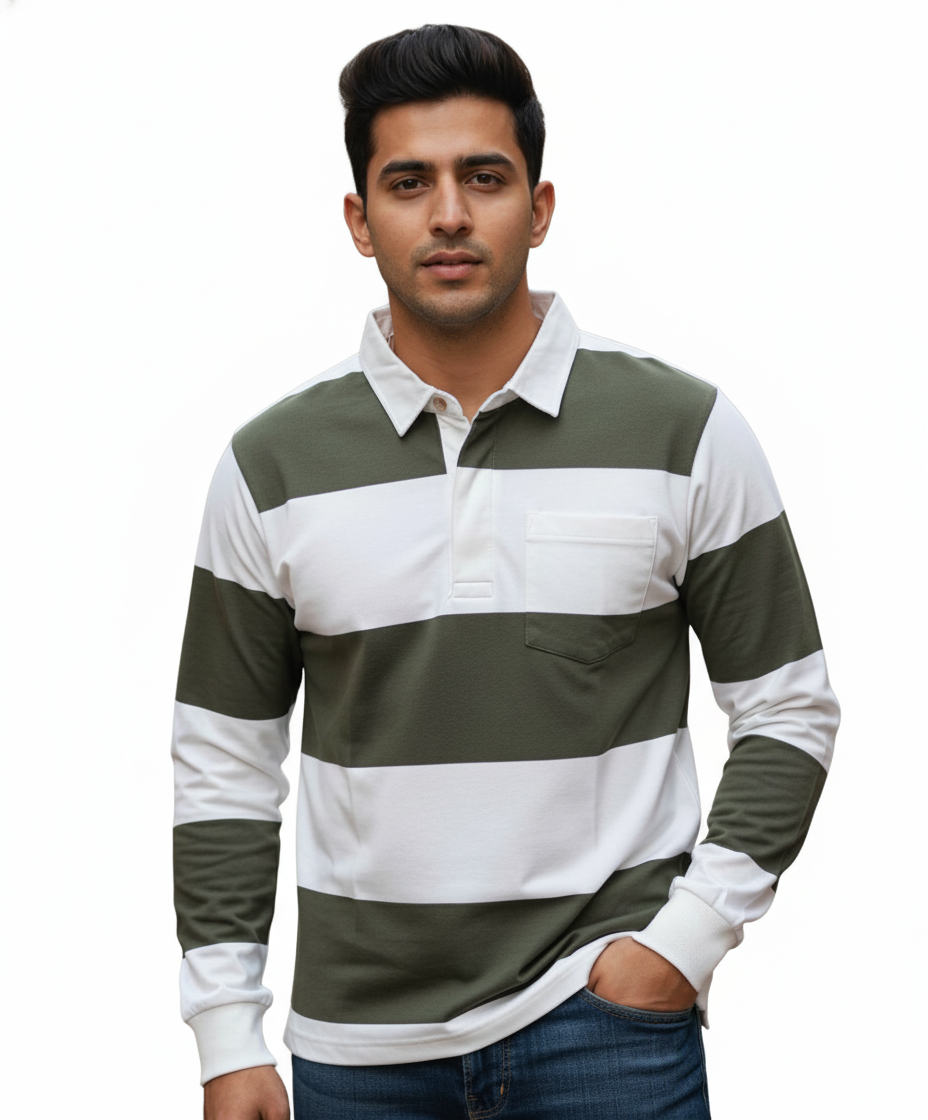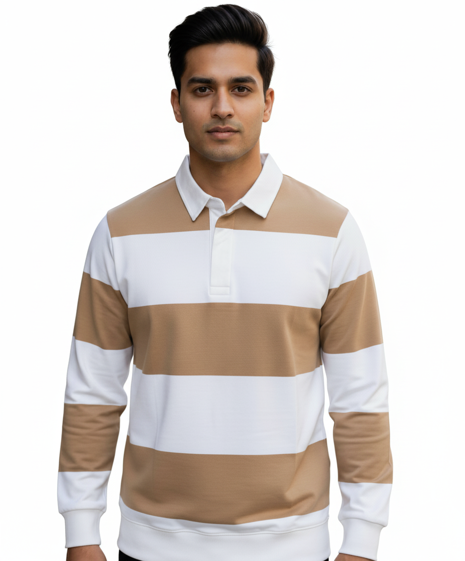 The White Board Strips Sweatshirt — comfy, stylish, and available in Beige, Brown, and Olive.